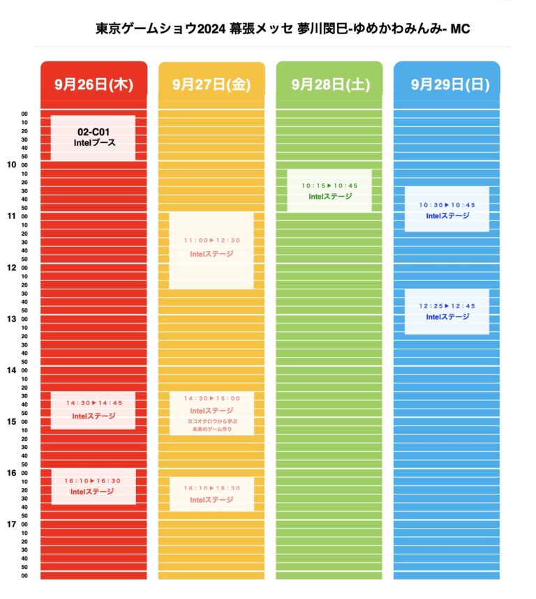 東京ゲームショウ2024 Intelステージへ下記日程の全ステージ